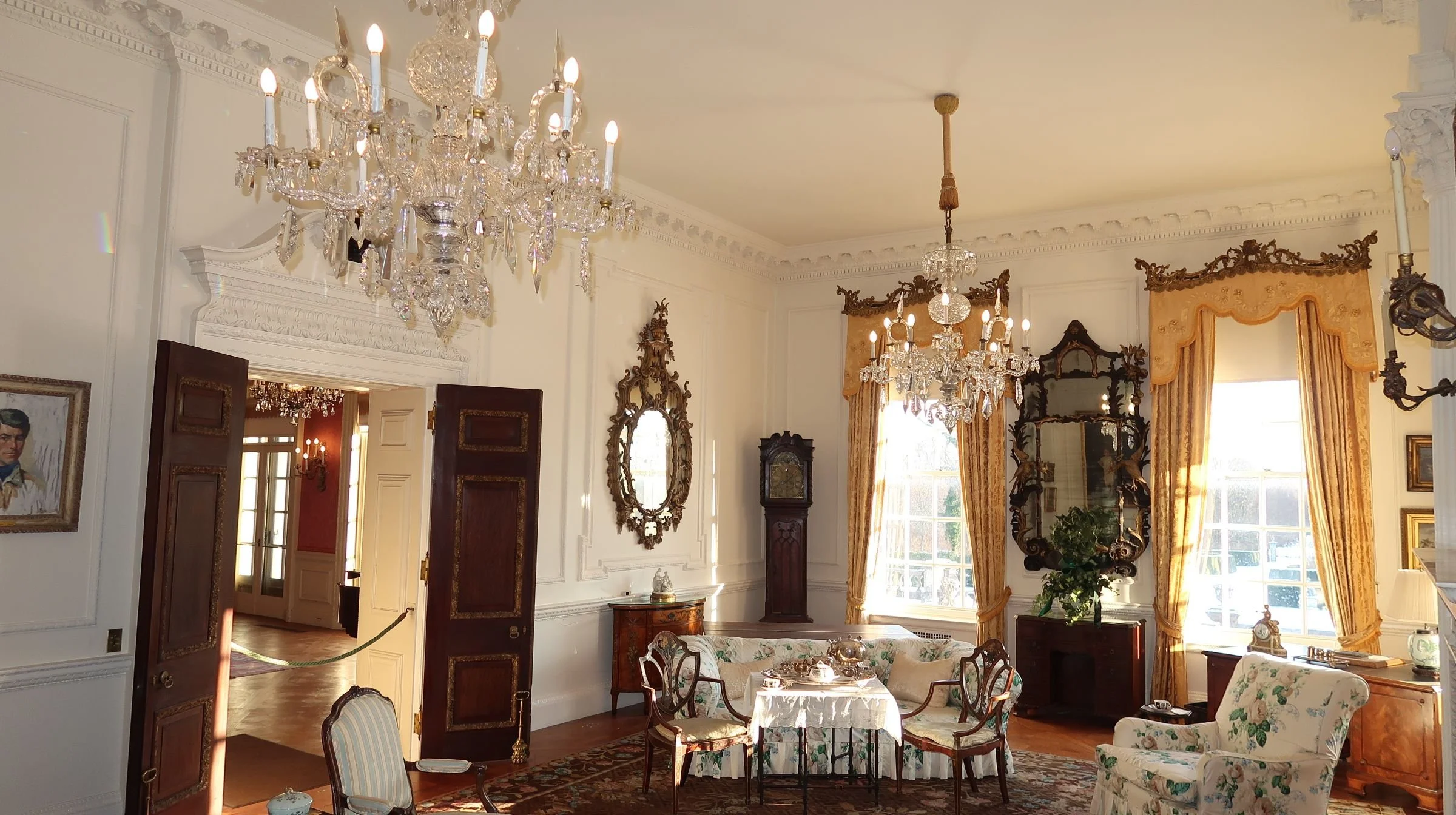 Adorned with elegant antique furniture, some comfy with floral patterned upholstery, Chinese silk wallpaper and photos of the Phipps’ four handsome children, the property also features some surprises. In the grand entry hall a display case features a stuffed Bengal tiger brought back from the Phipps’ Indian honeymoon, and the massive glass windows surrounding the side porch can during good weather slide down under the floor.